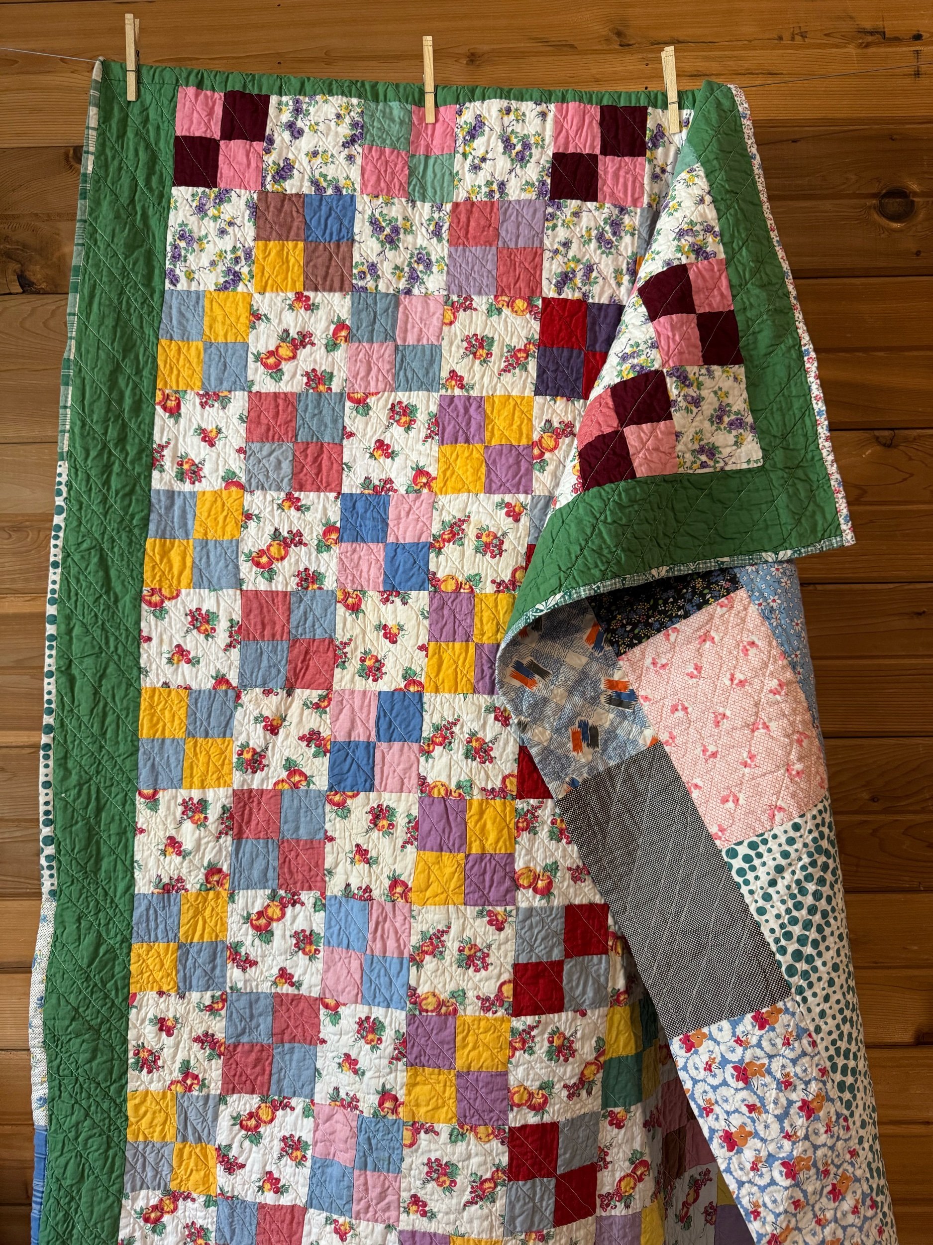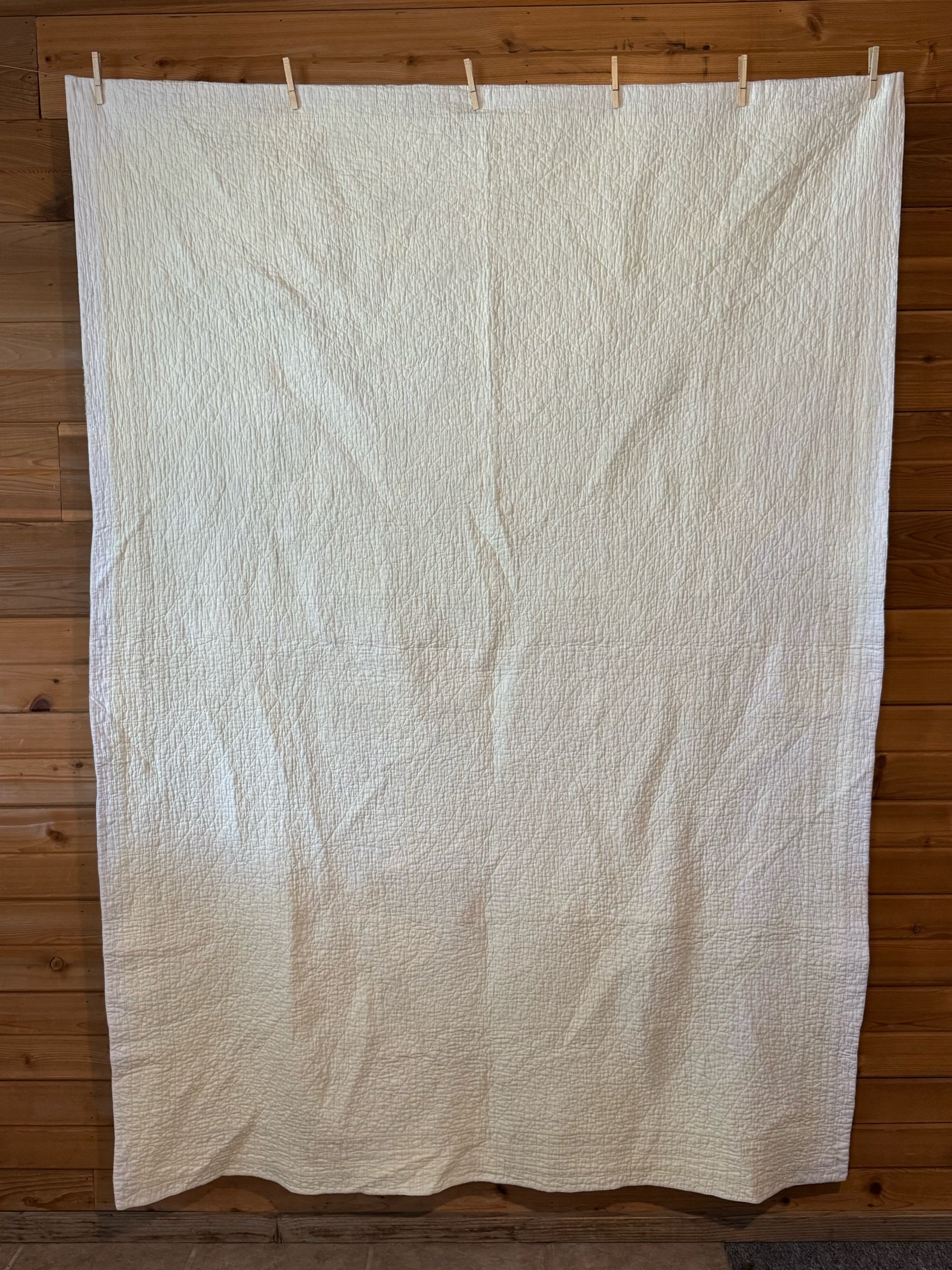 Details: This is what we would call lightweight quilt. NOTE: this quilt is UNFINISHED - there is no binding and it is only partially hand quilted. There are still basting stitches present, which keeps the layers of the quilt in place, so they don’t shift while working for the project. There is a black border on all 4 sides. The fabrics of the quilt stop appear to be civil war era fabrics. We do not believe the backing is near as old. The backing is white cotton. This project quilt has no been washed!! Please view all pictures before buying.