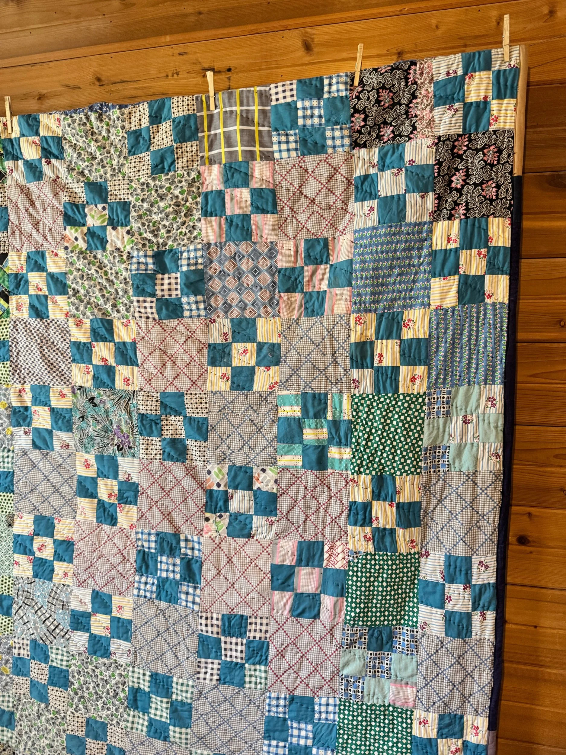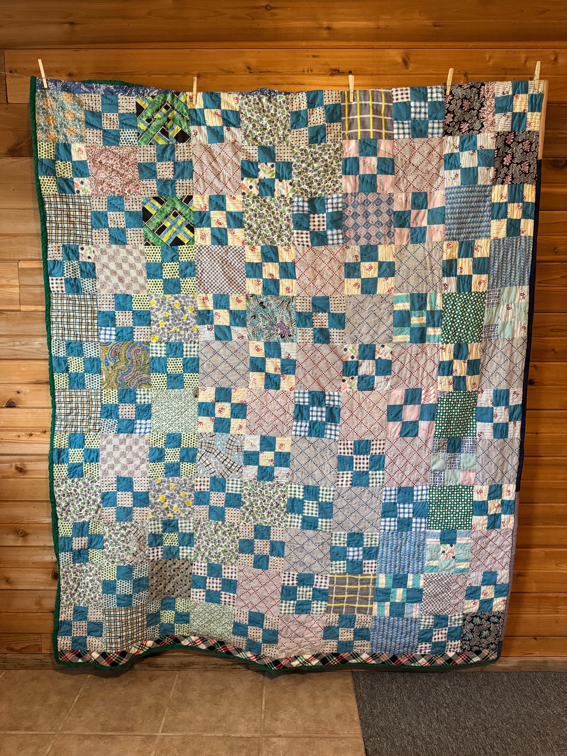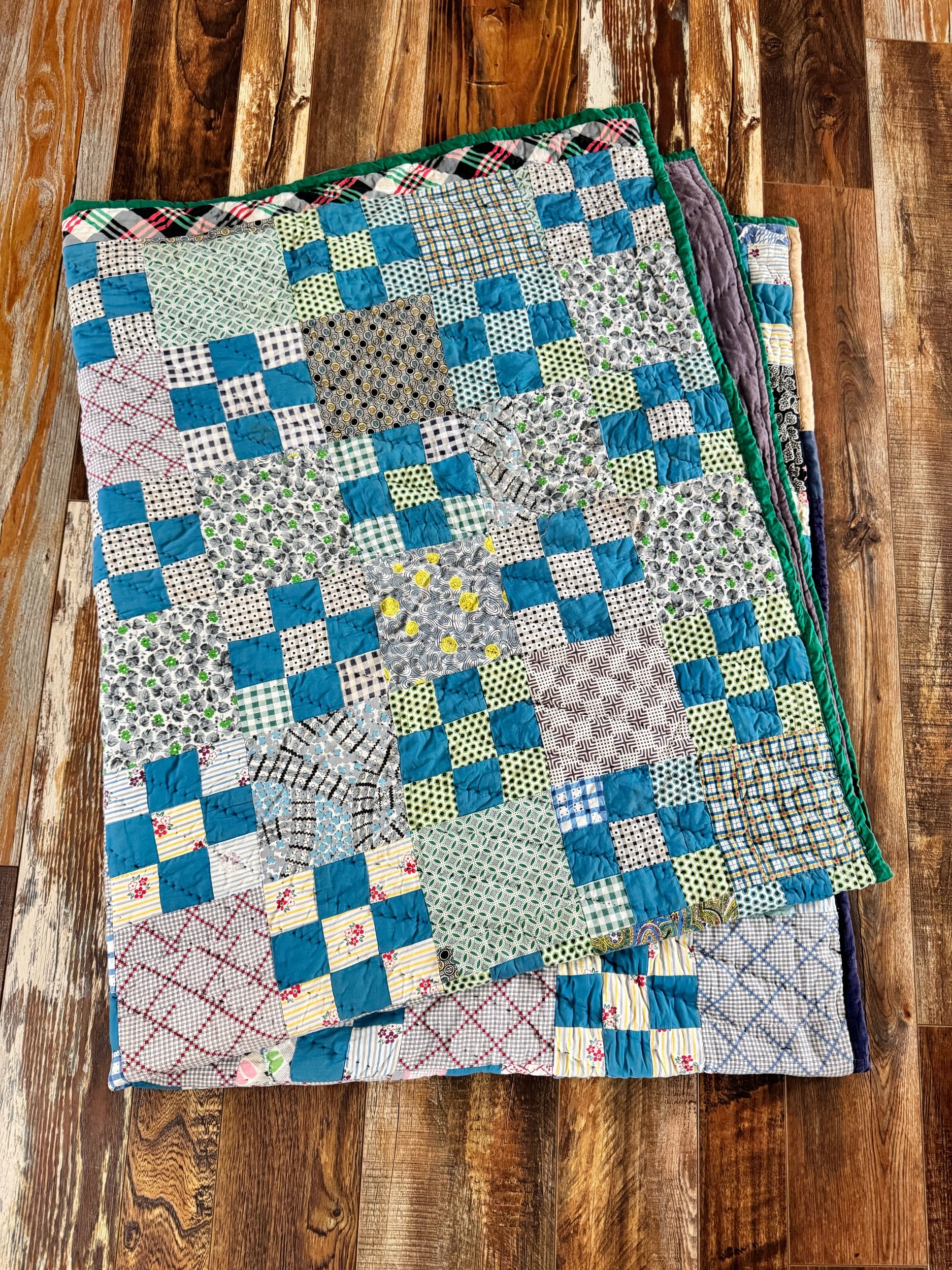 Vintage Blue and Green 9 Patch Quilt