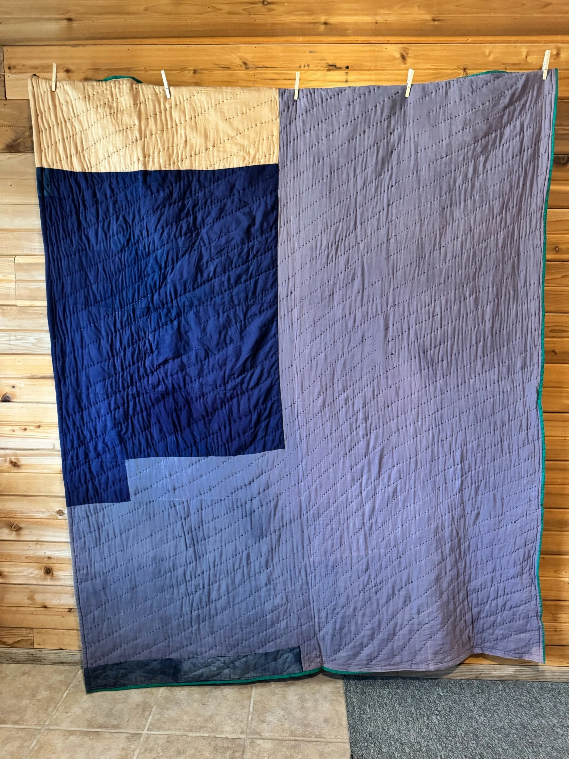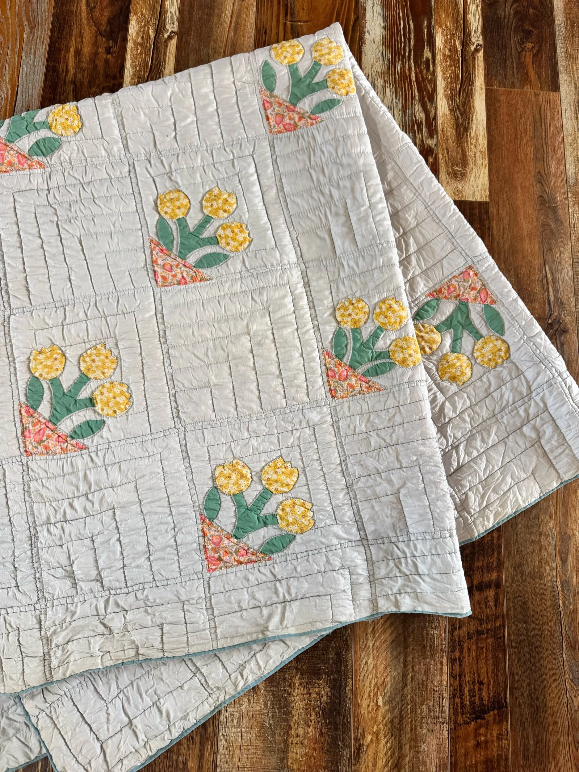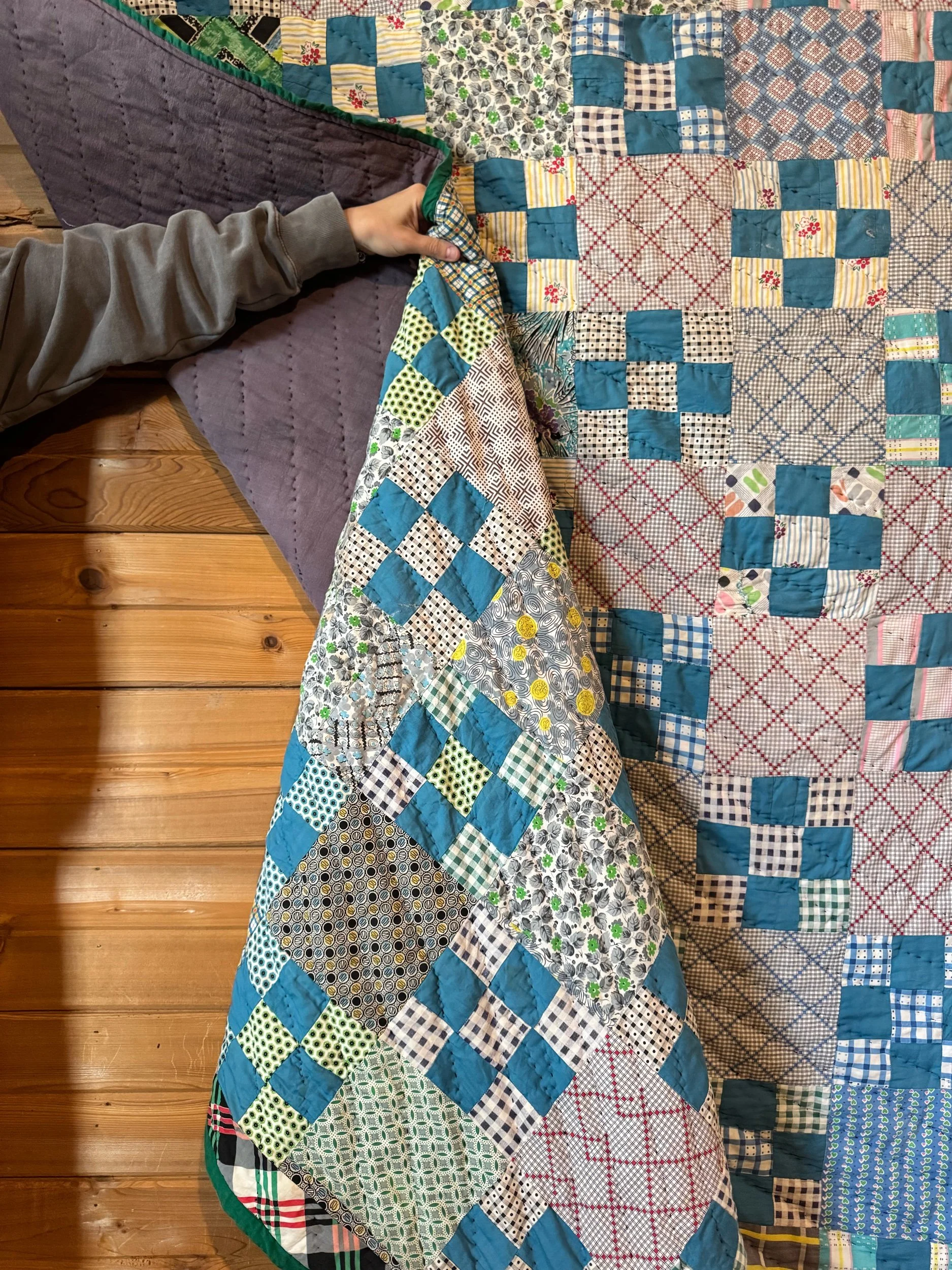 Vintage Blue and Green 9 Patch Quilt