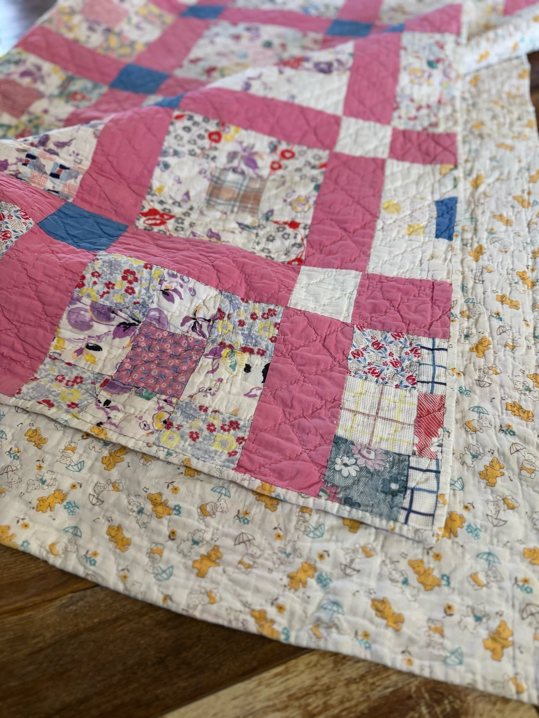 Vintage Blue & Dusty-Rose Half Square Triangle Quilt