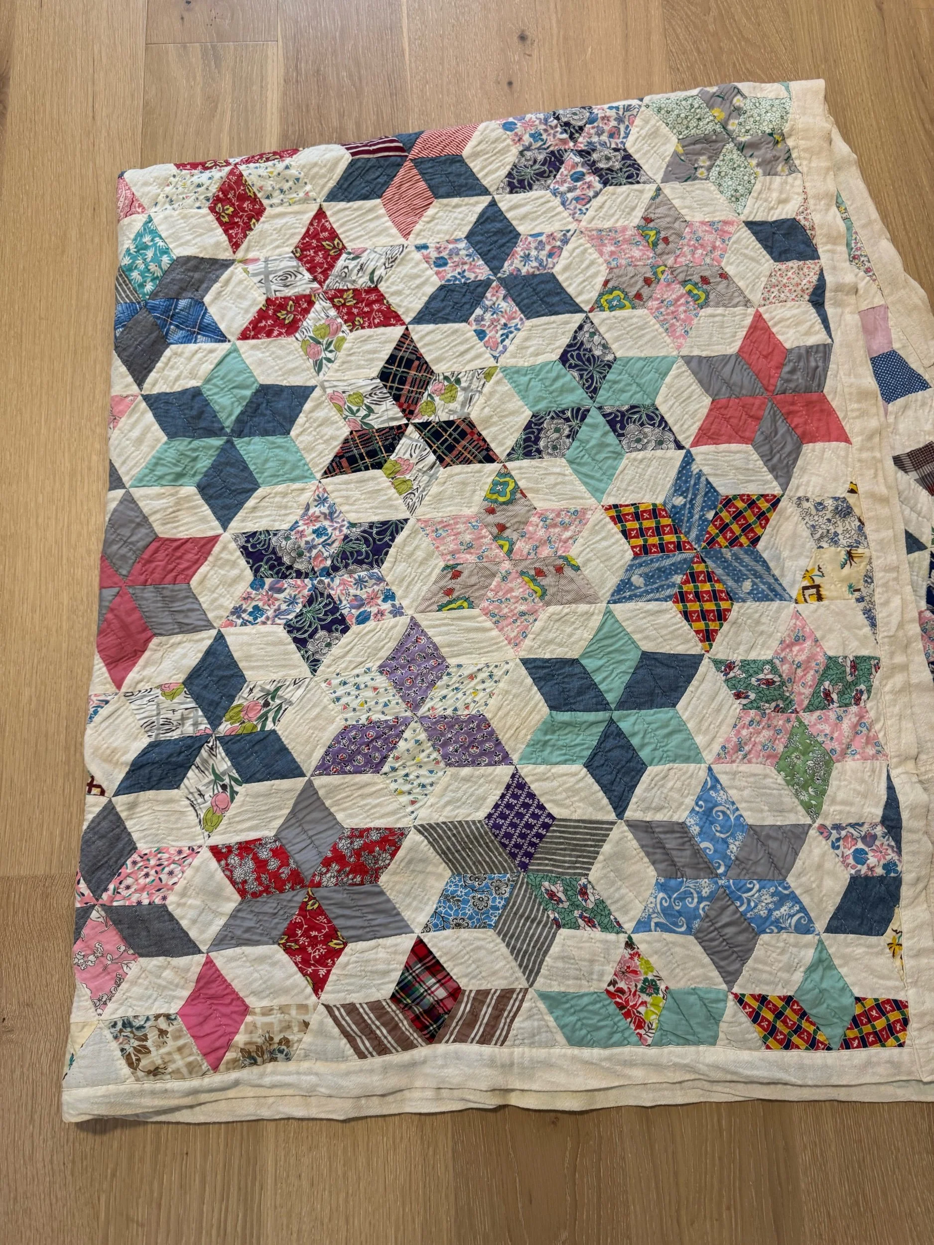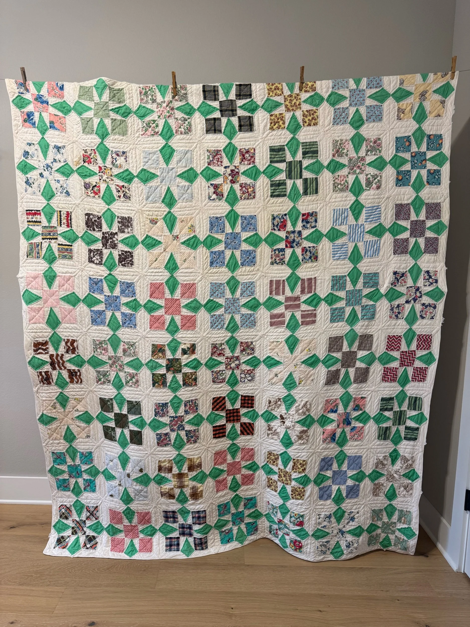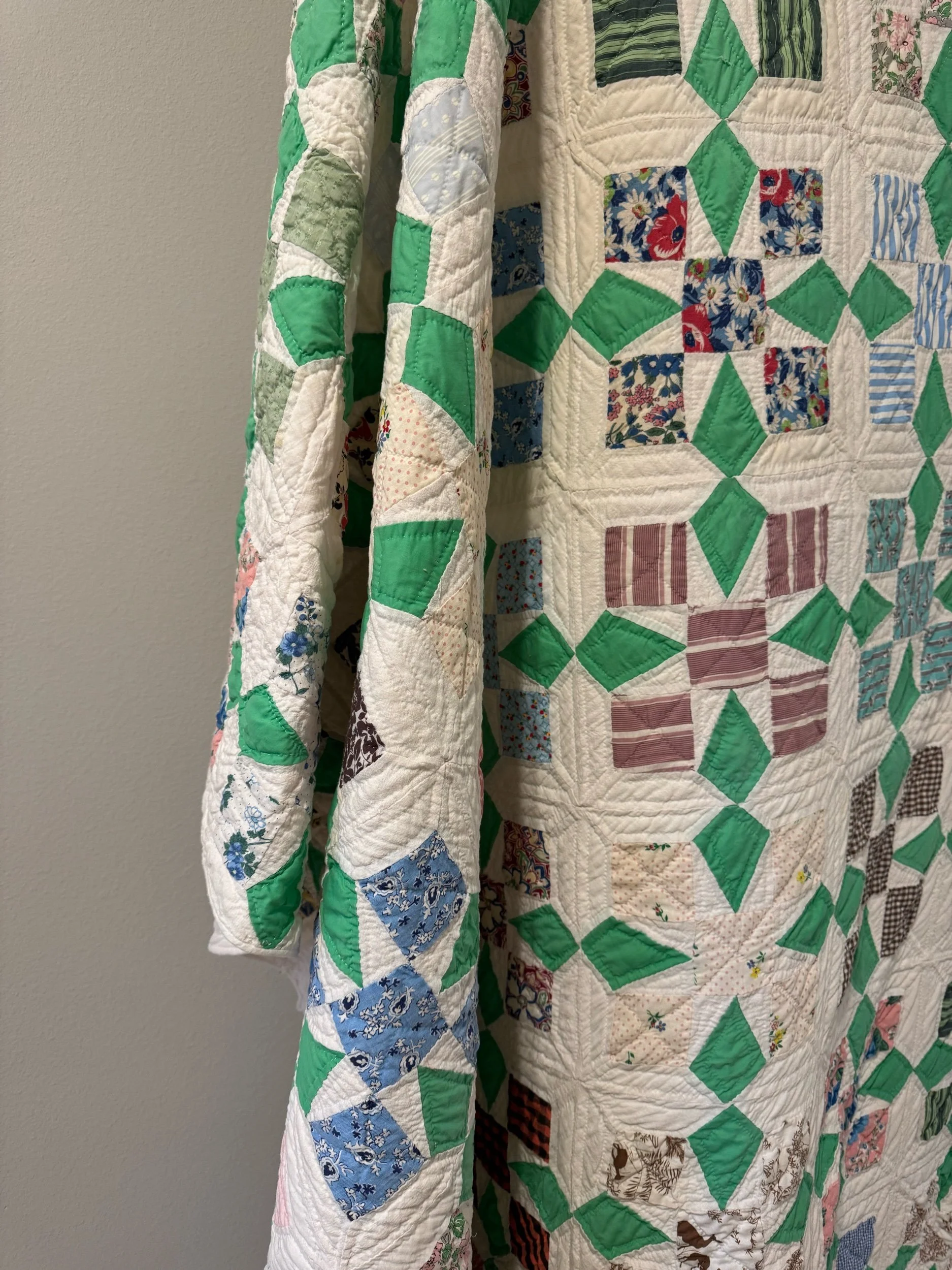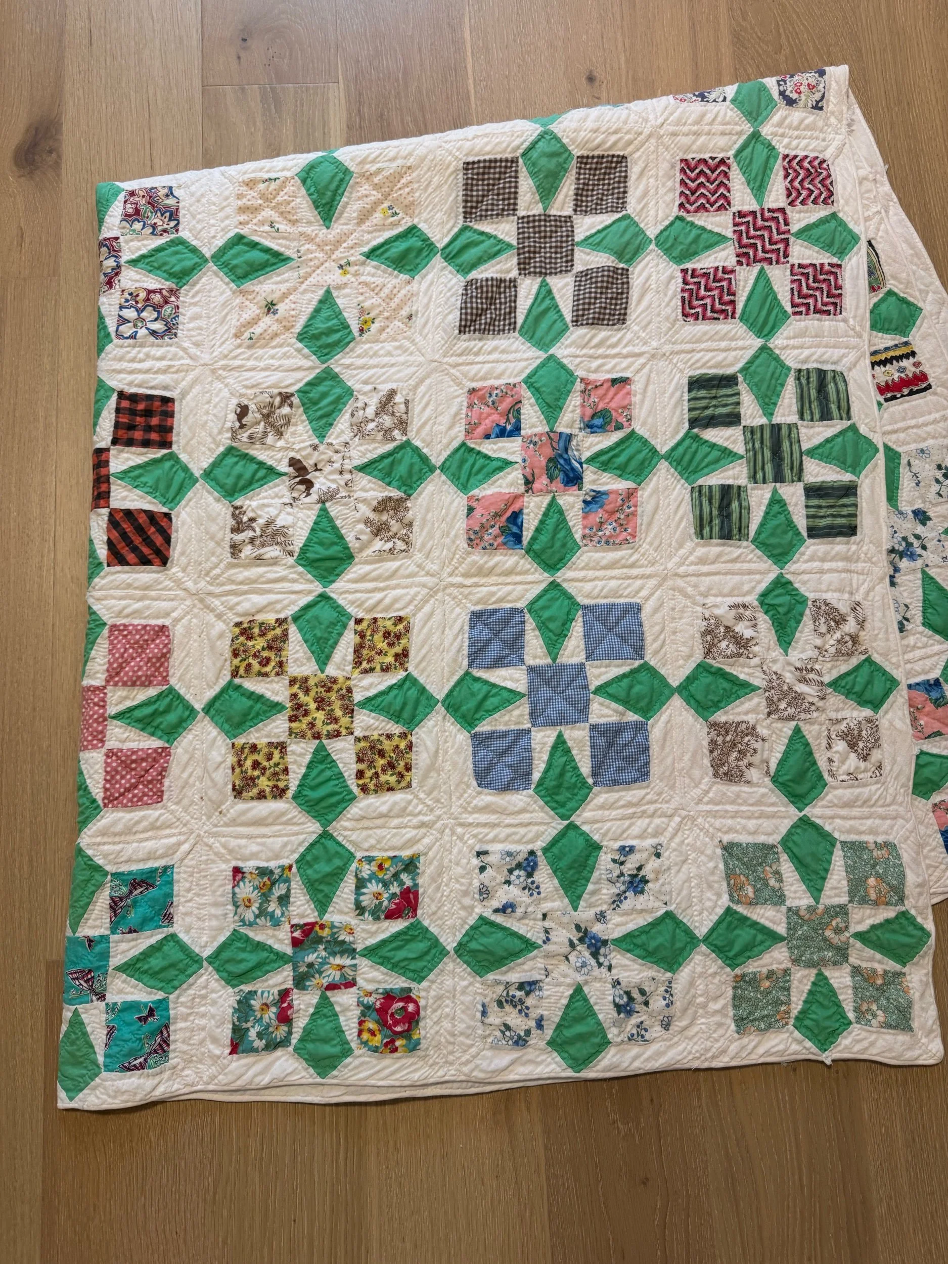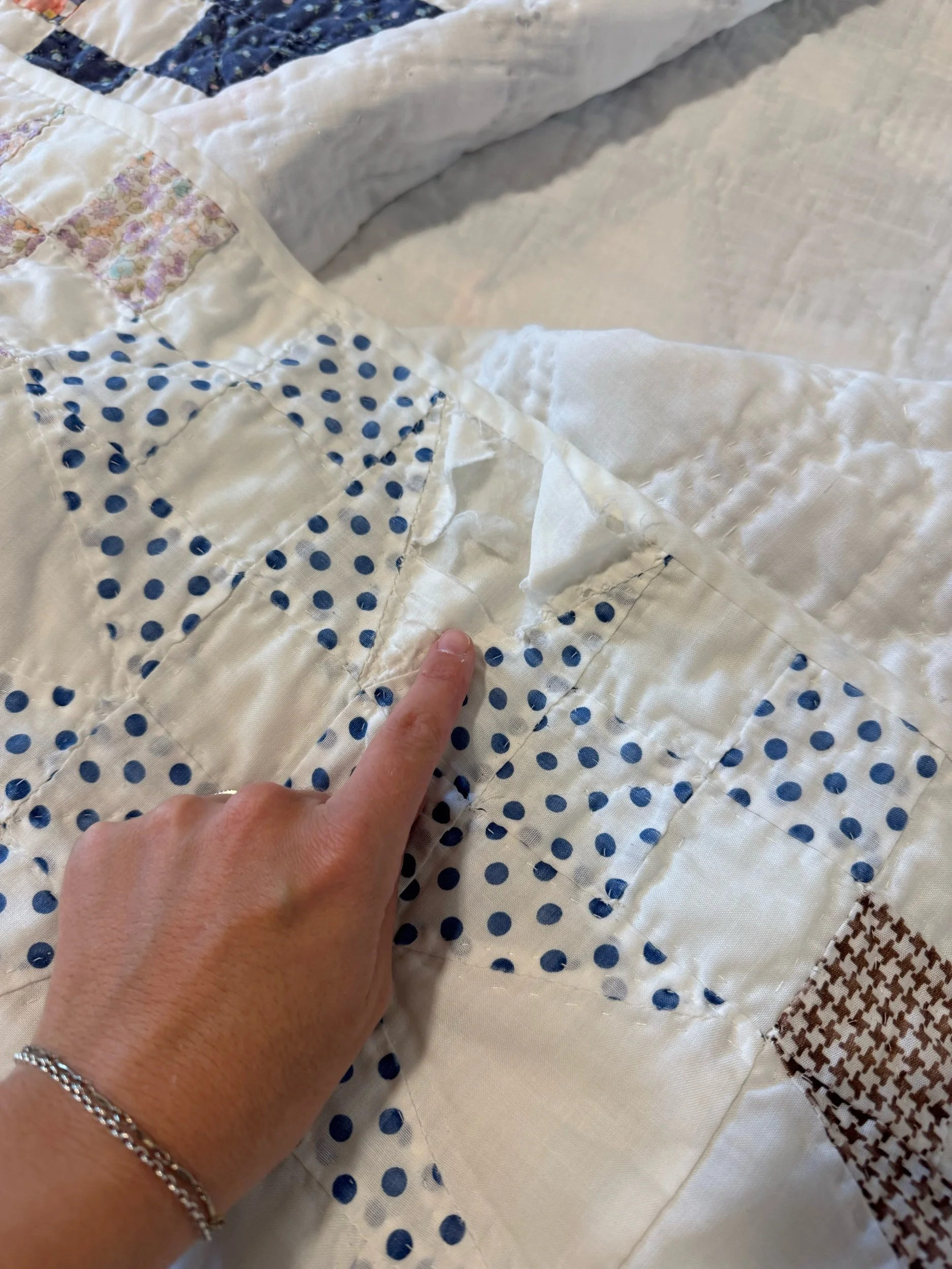 This quilt has been carefully washed and air dried. Please view all pictures before buying.