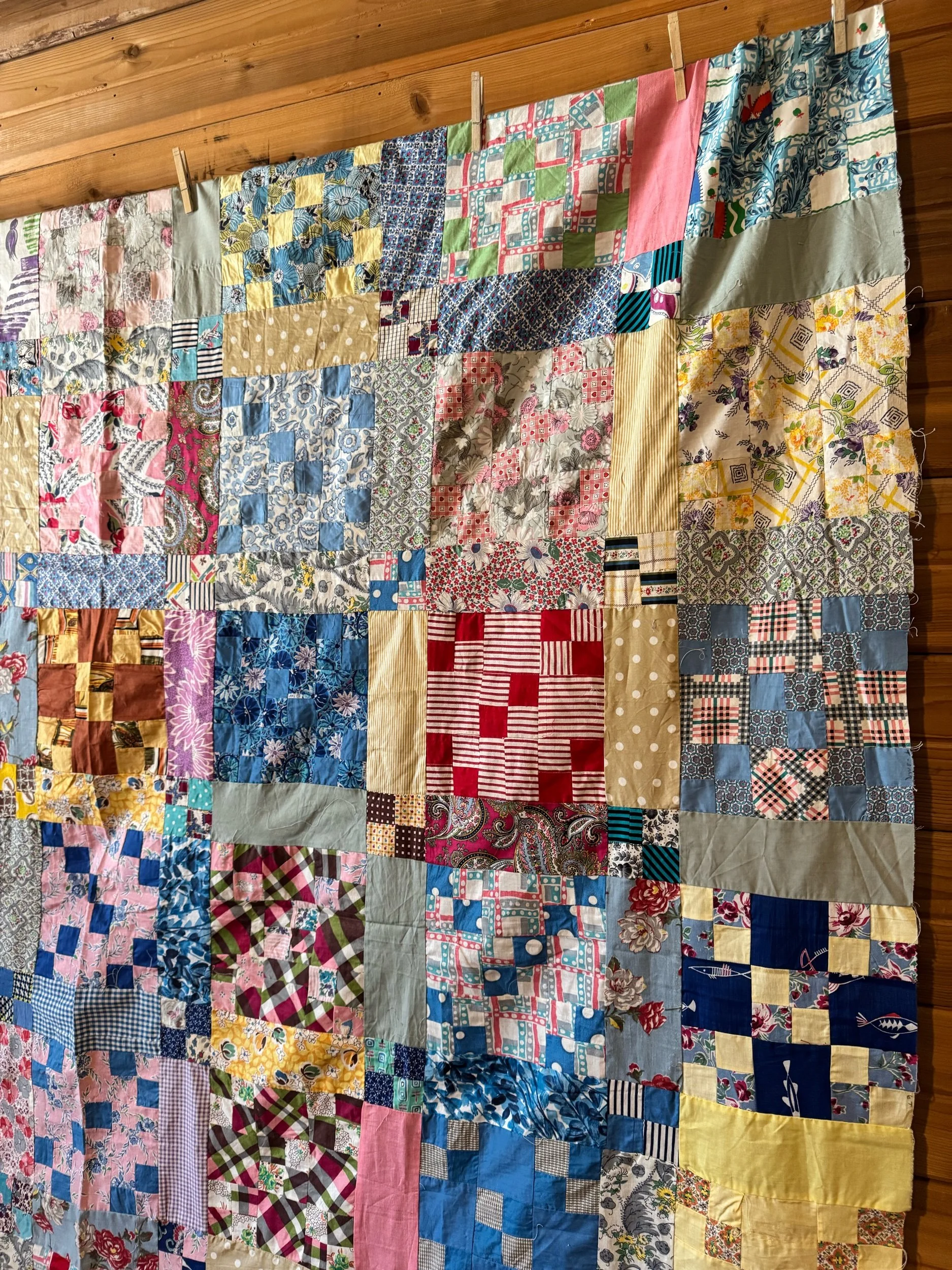 Vintage Green, Scrappy Postage Stamp Quilt TOP
