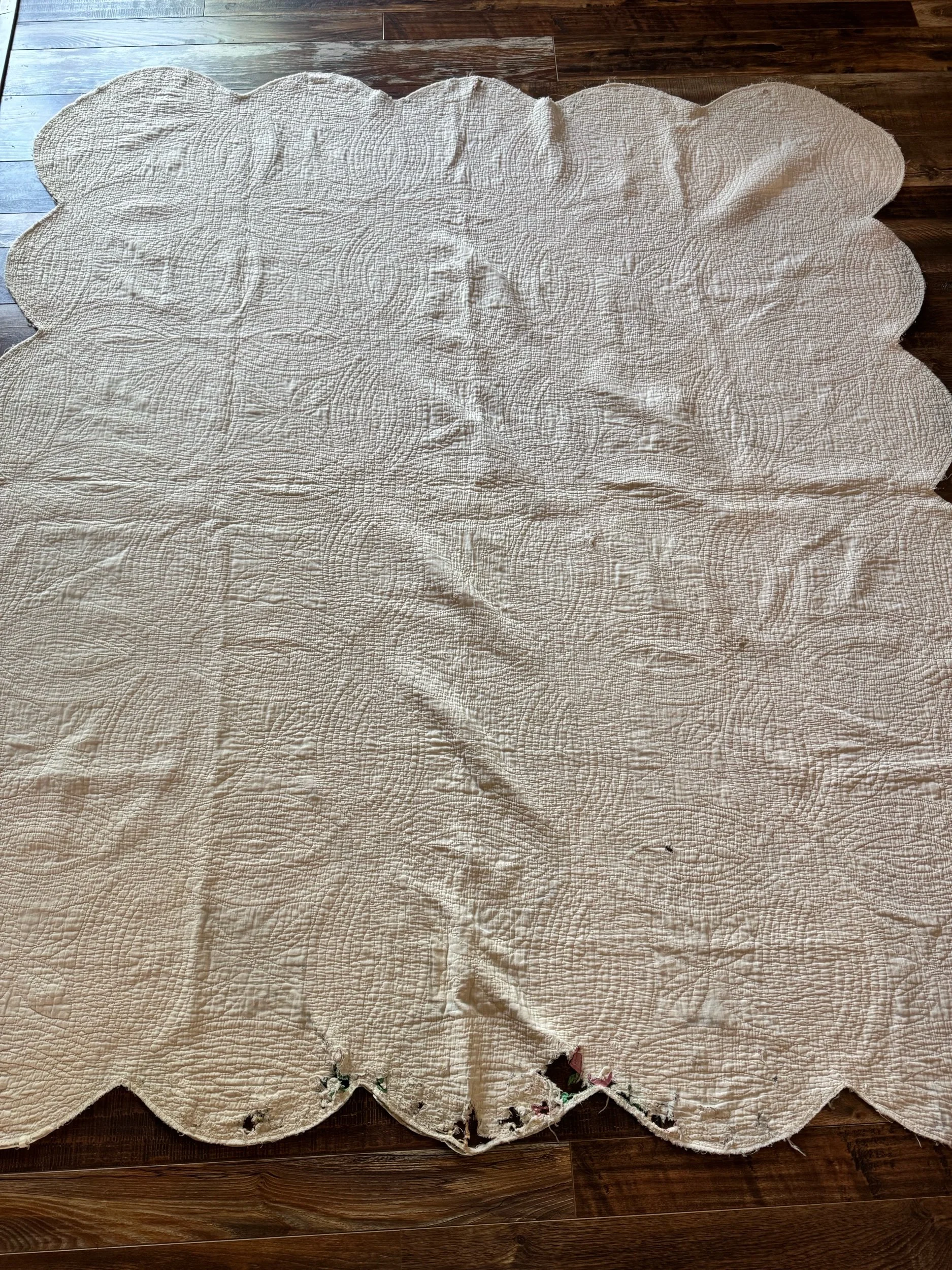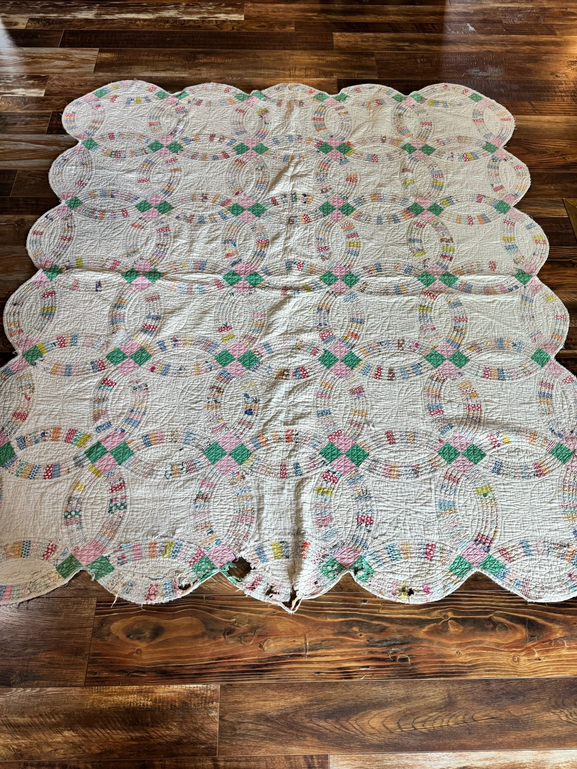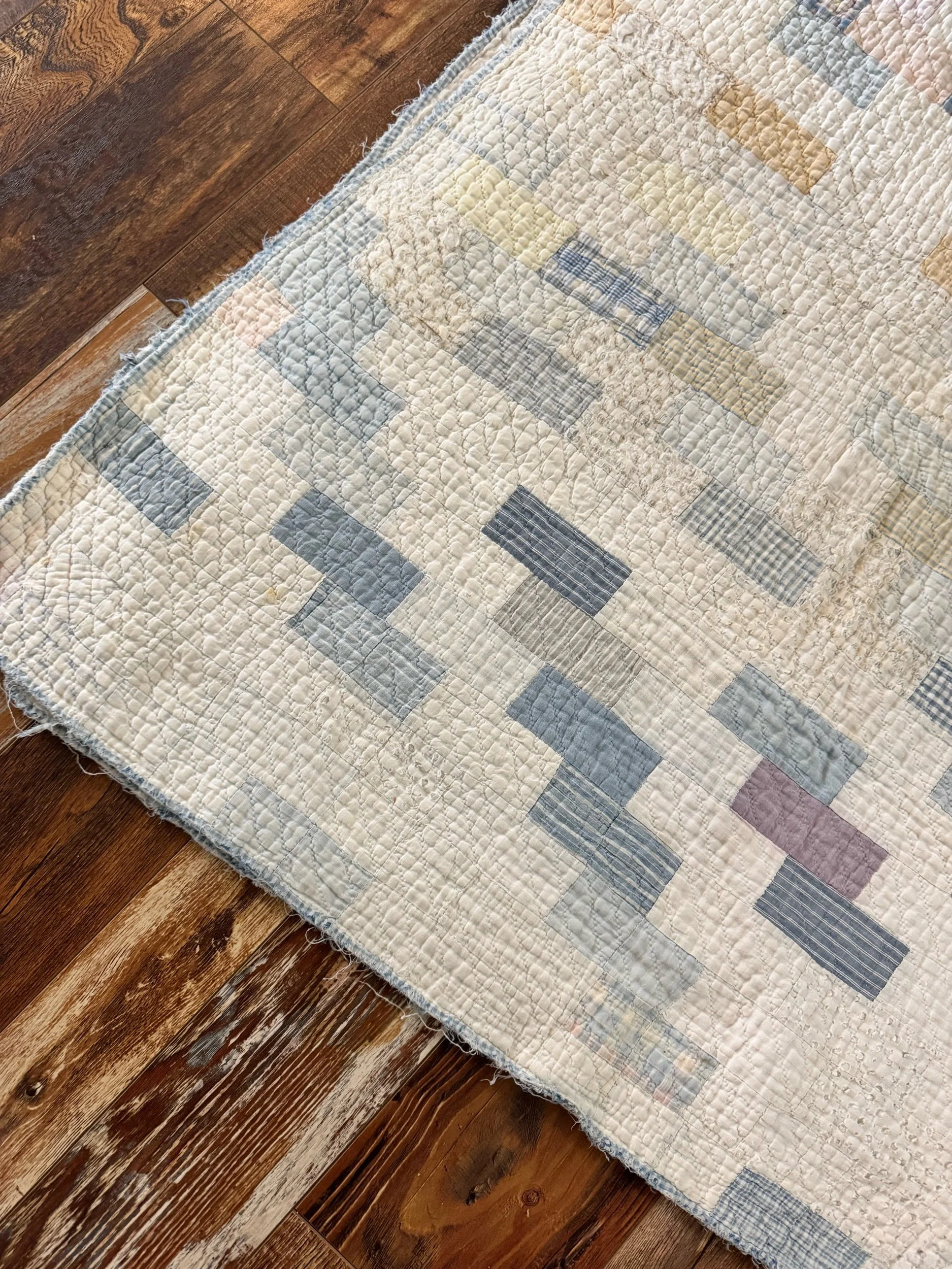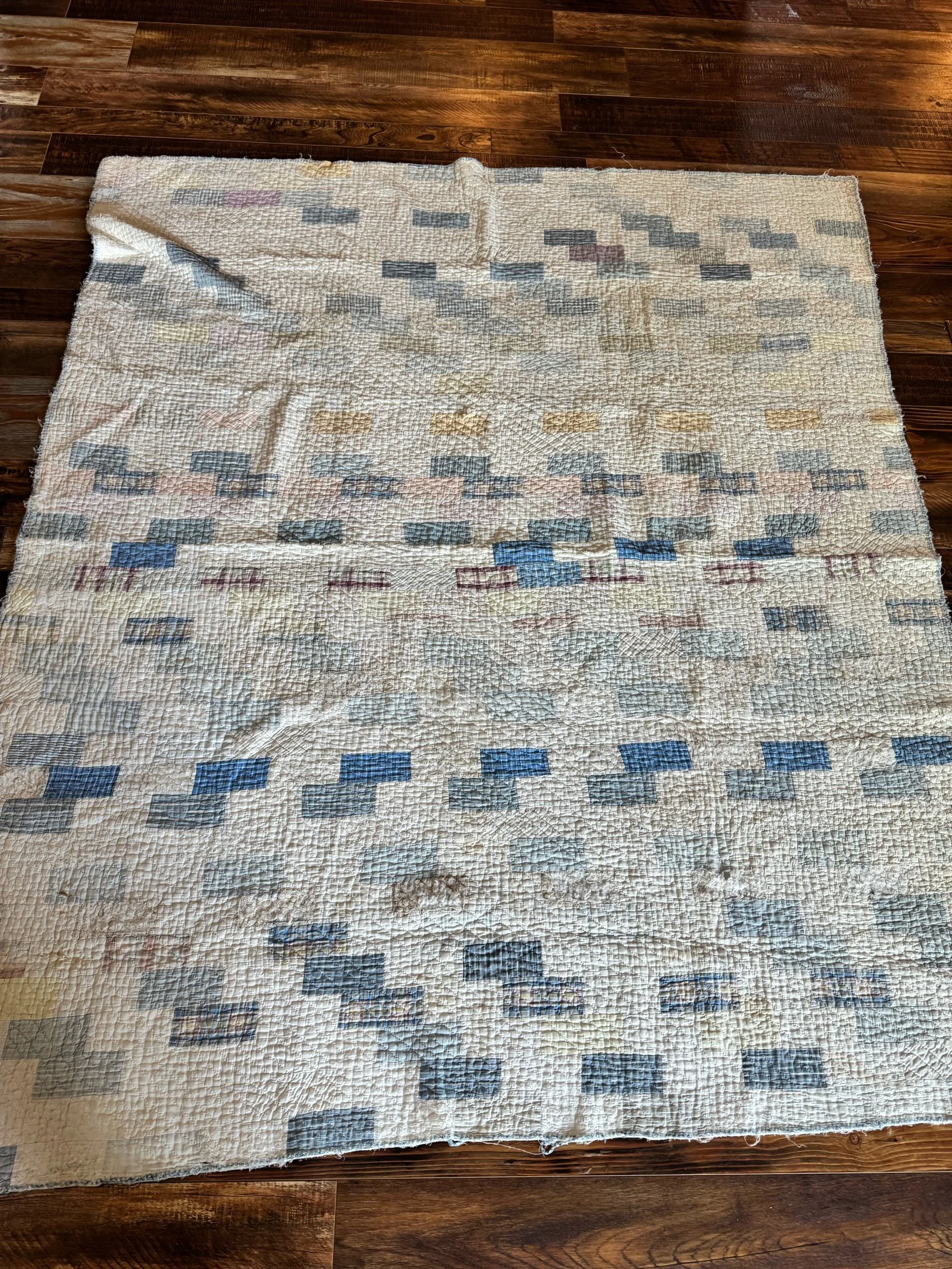 Details: This is a cutter quilt! Please note this is meant to be used in crafting or large projects. There are some holes and wear throughout cutter-condition quilts. Please view all pictures before buying.