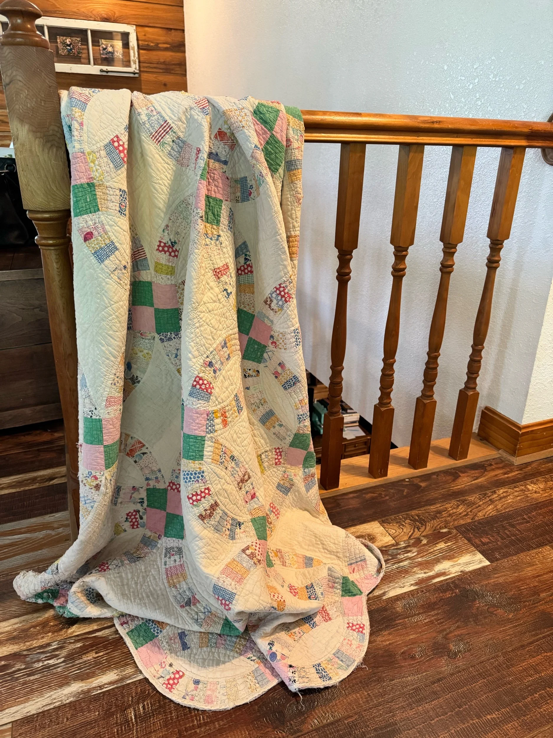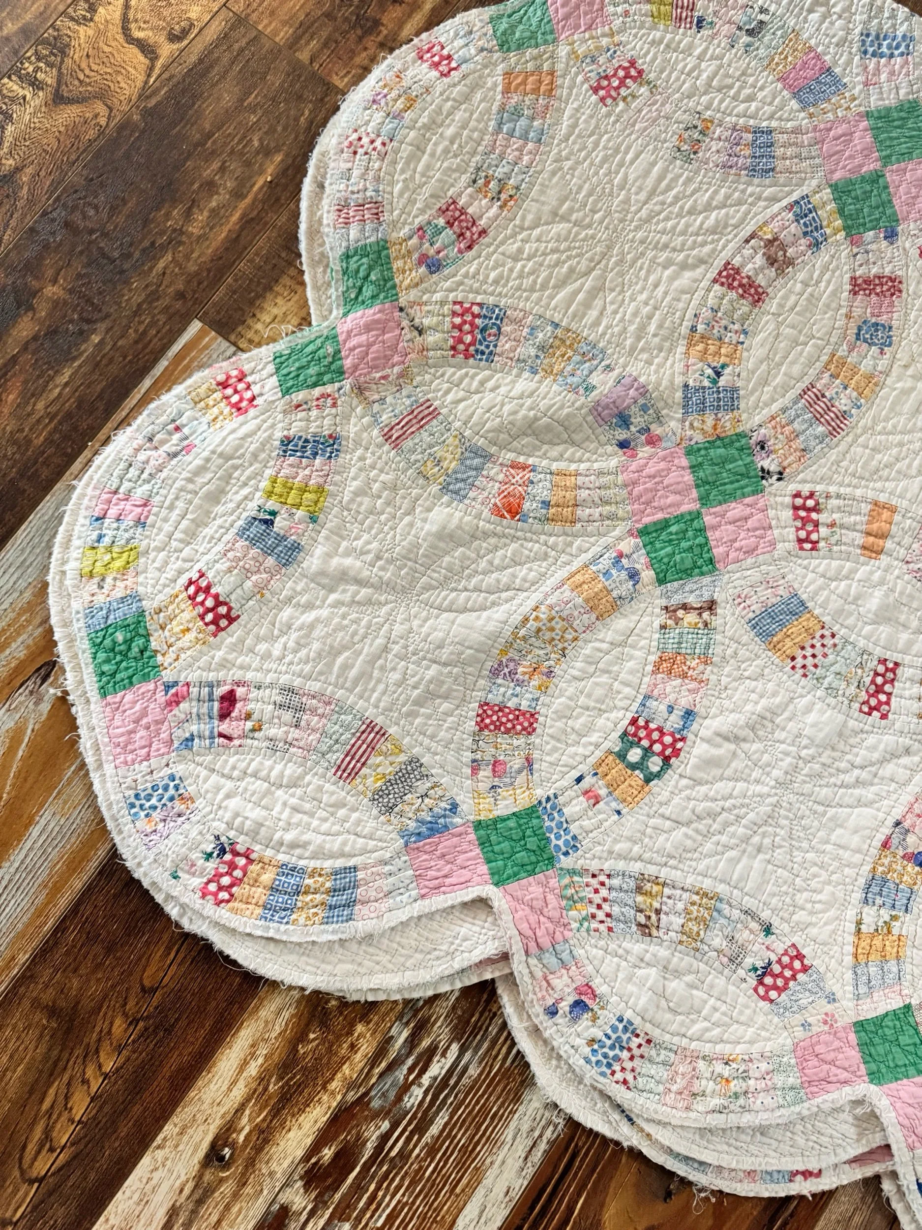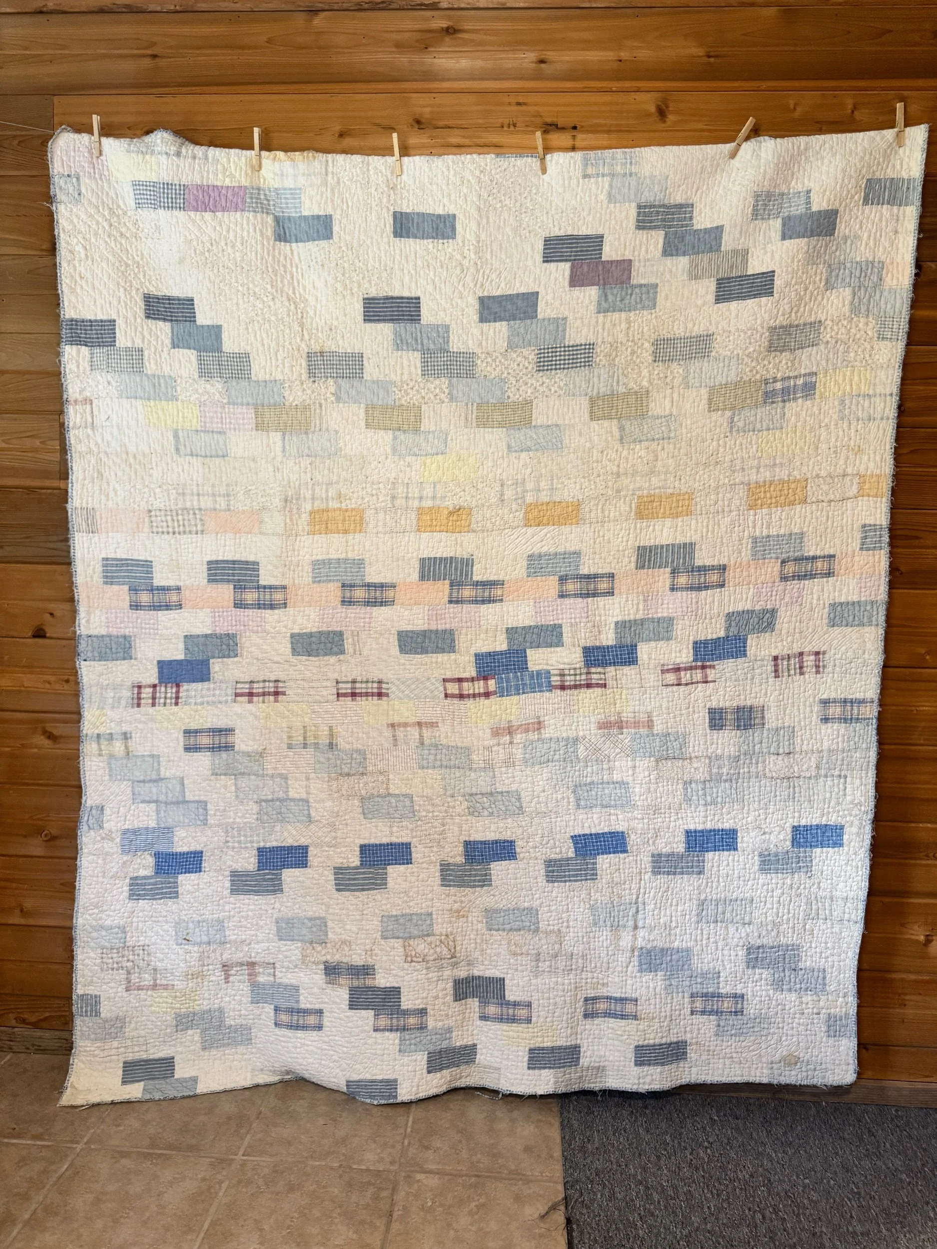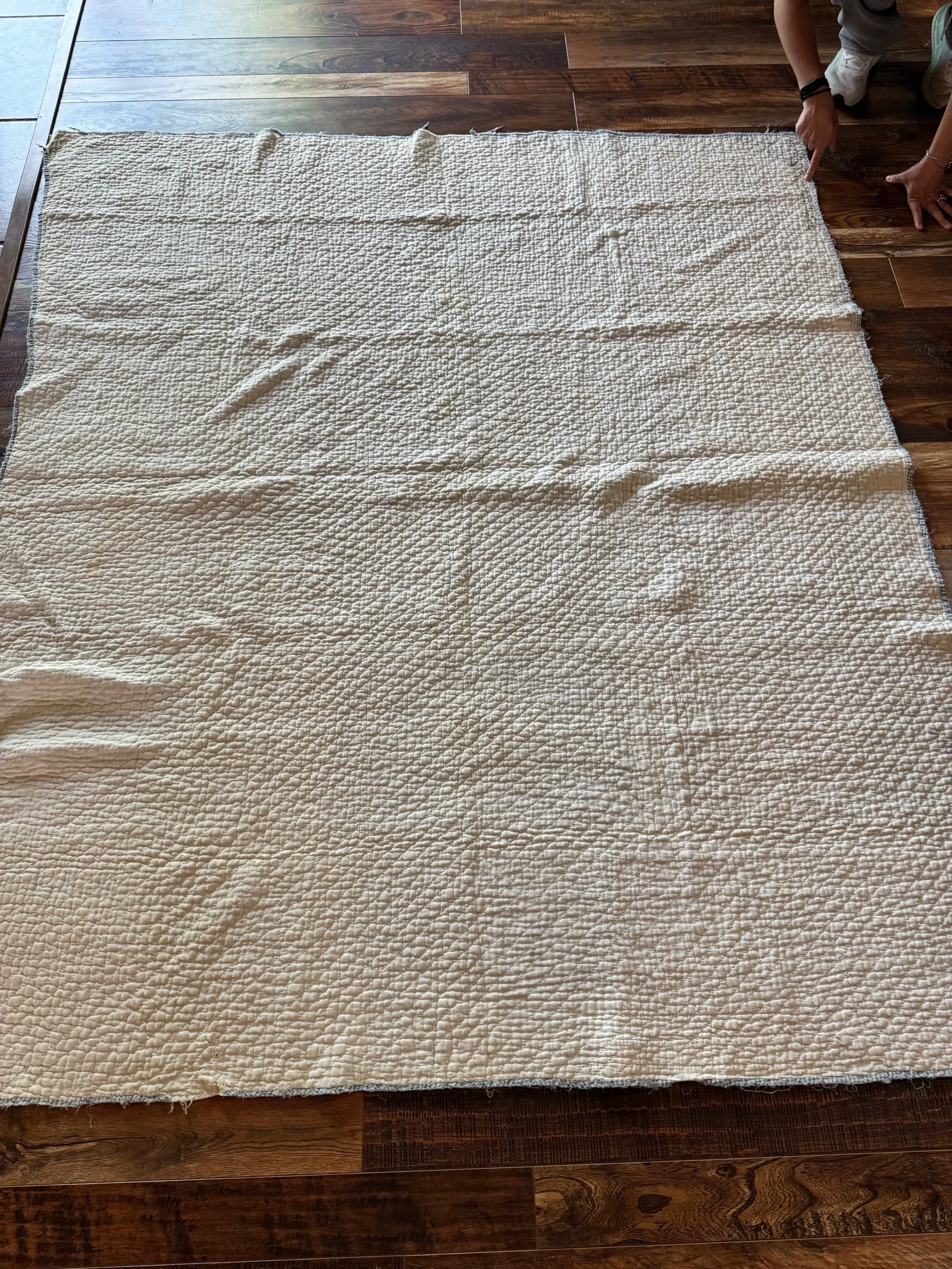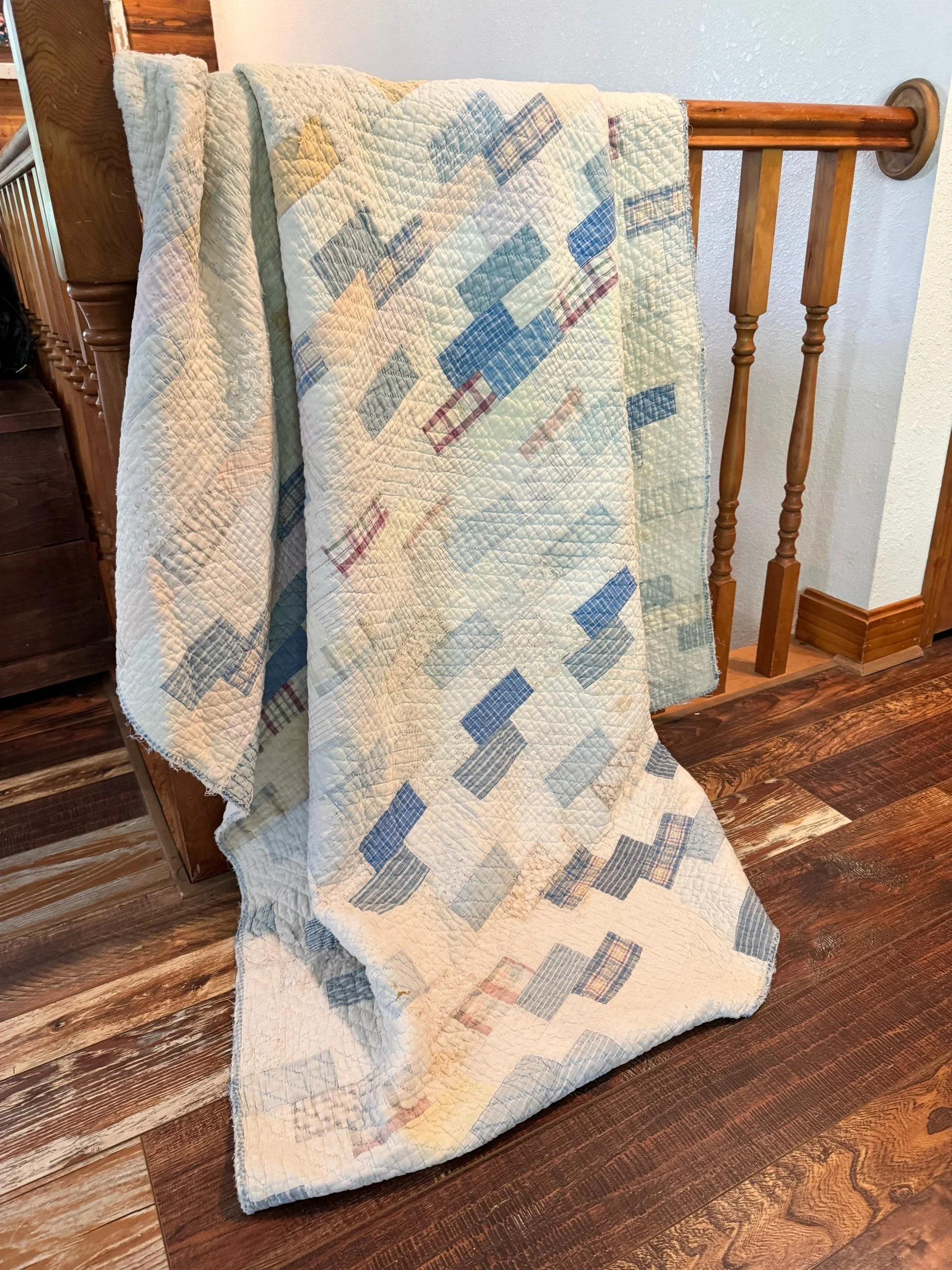 Details: This is a cutter quilt! Please note this is meant to be used in crafting or large projects. There are some holes and wear throughout cutter-condition quilts. Please view all pictures before buying.