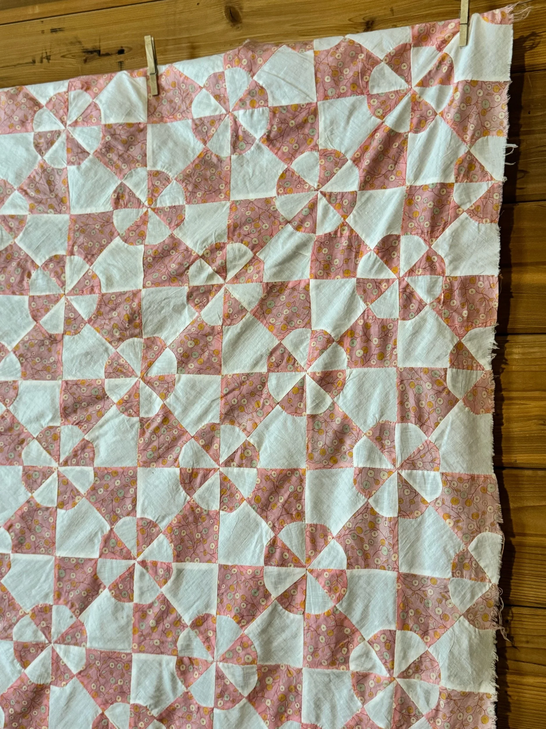 Vintage Pink-Print, Hearts and Gizzards Quilt TOP