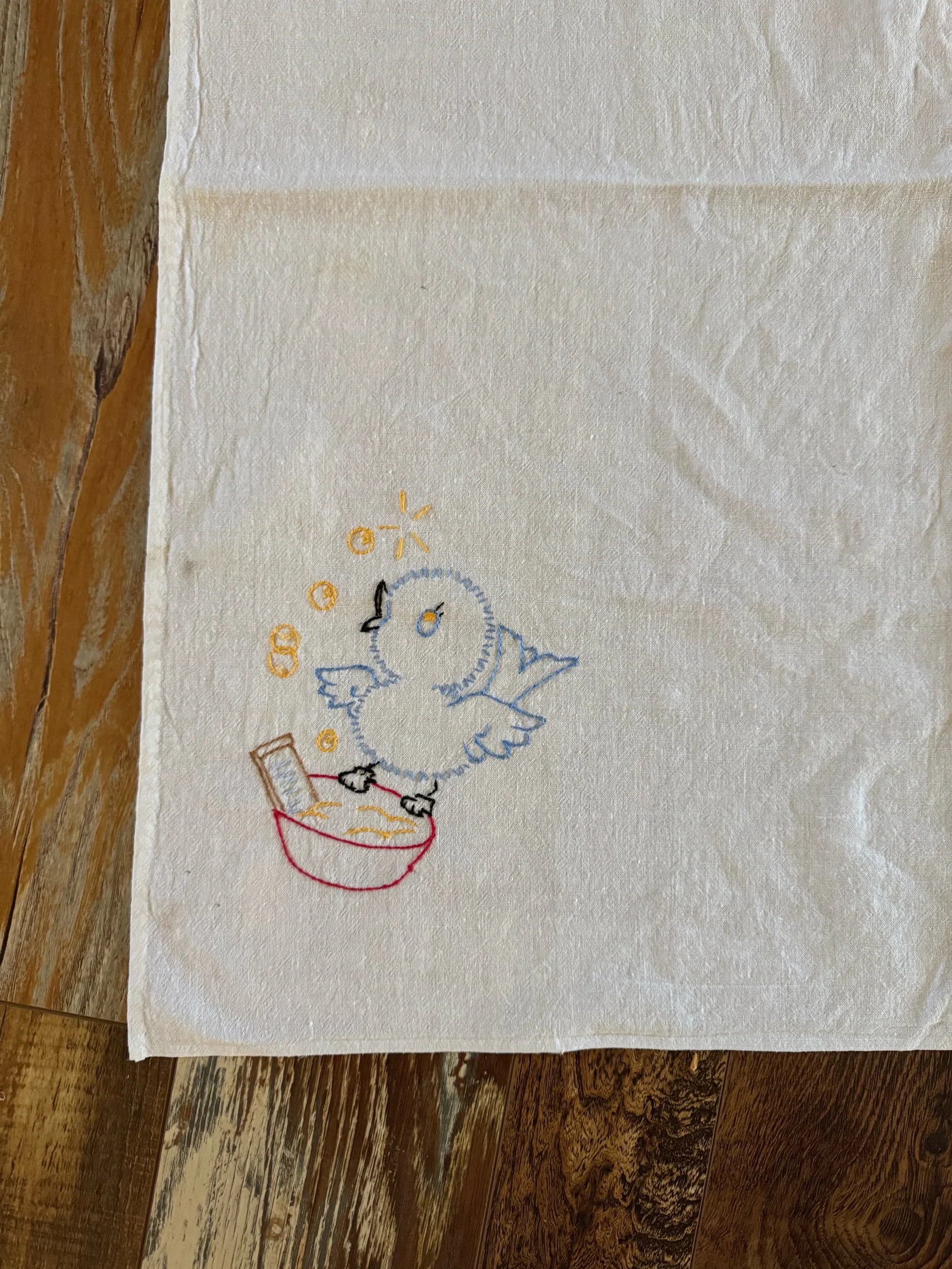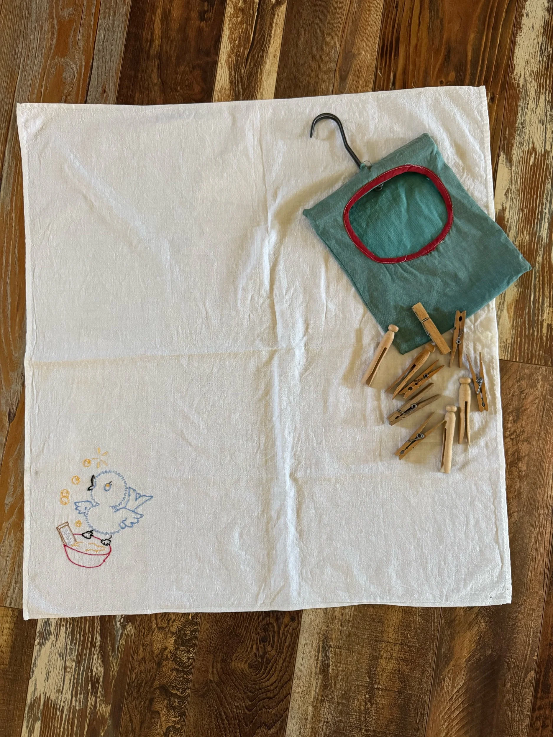 — little birdy with wash board and wash basin, hand towel