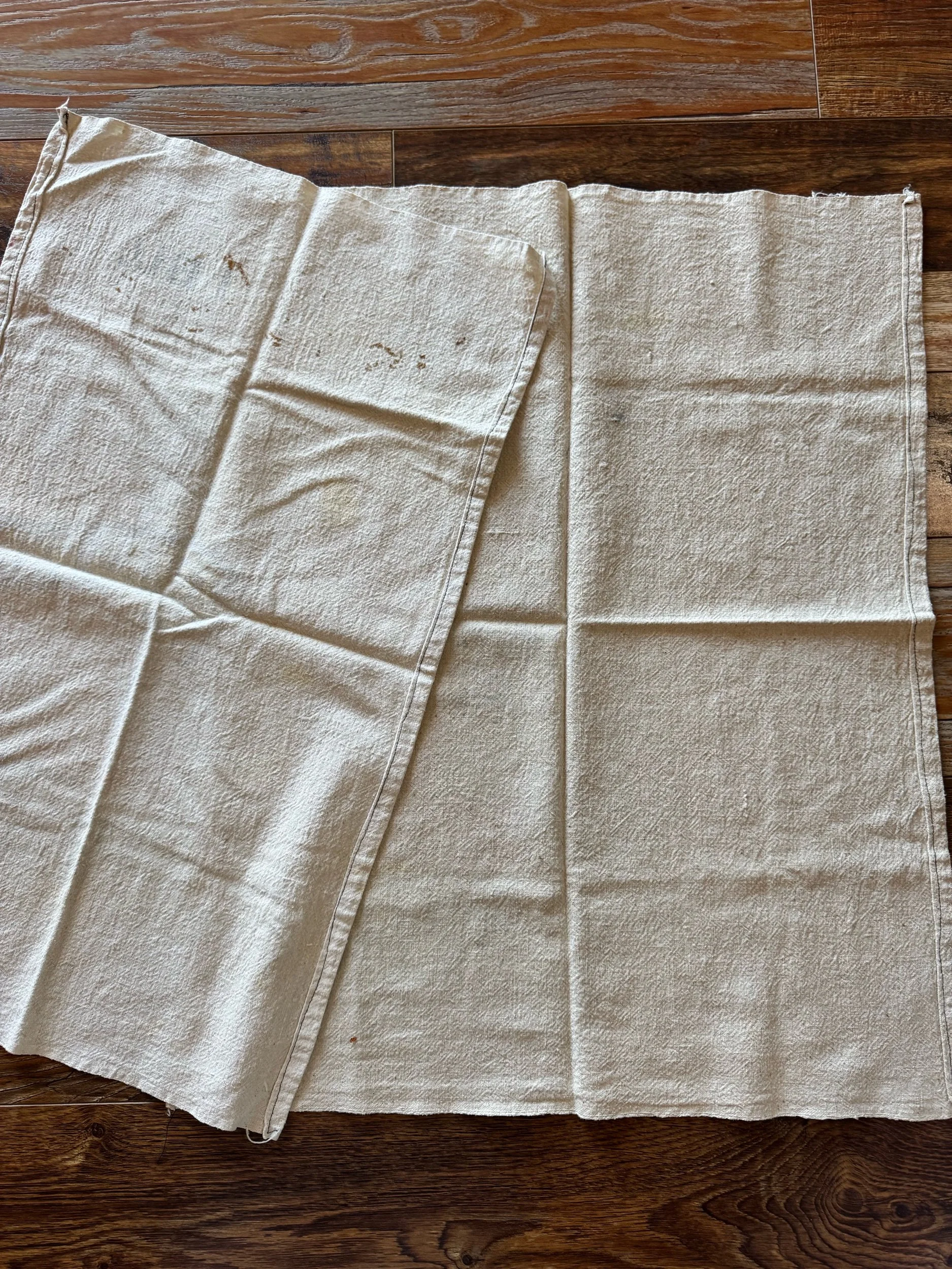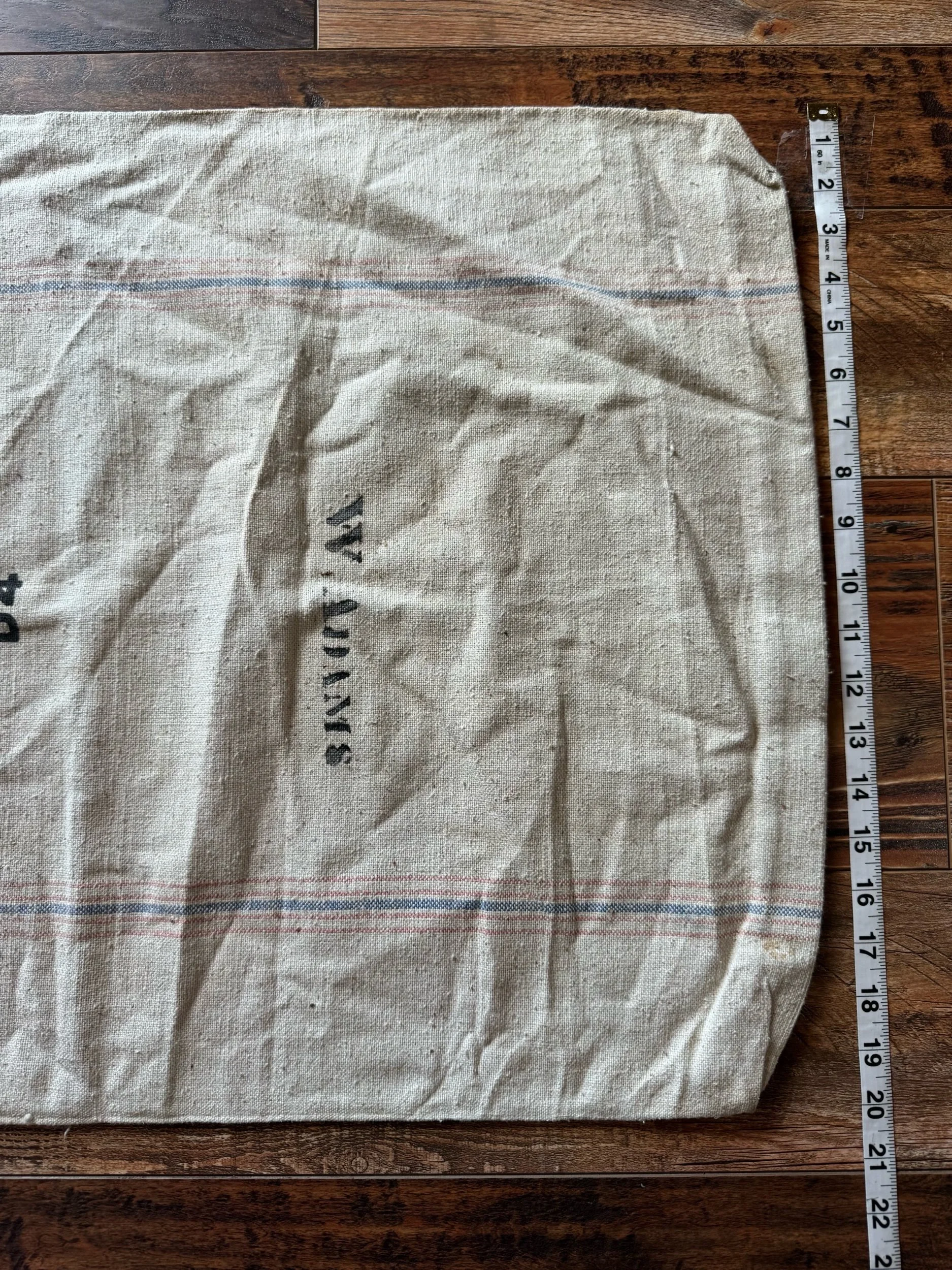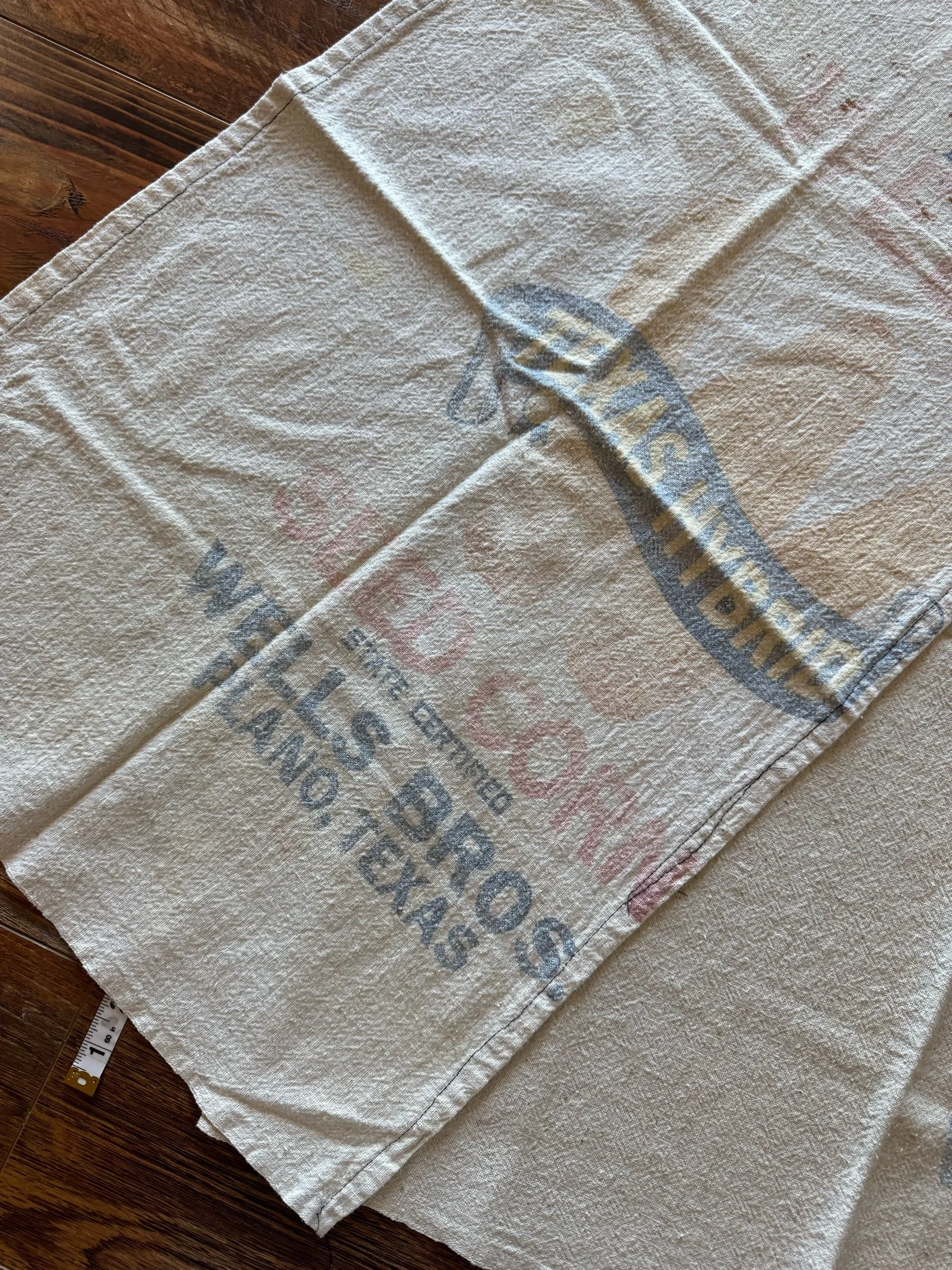 These cotton flour sacks measure 13” X 25” . This sack is still intact. We love the bold red print on the crem colored cotton. Overall, the sack is in good condition. Wear as expected for vintage sack. Please see all pictures before purchasing. Photos are a part of the description/listing.