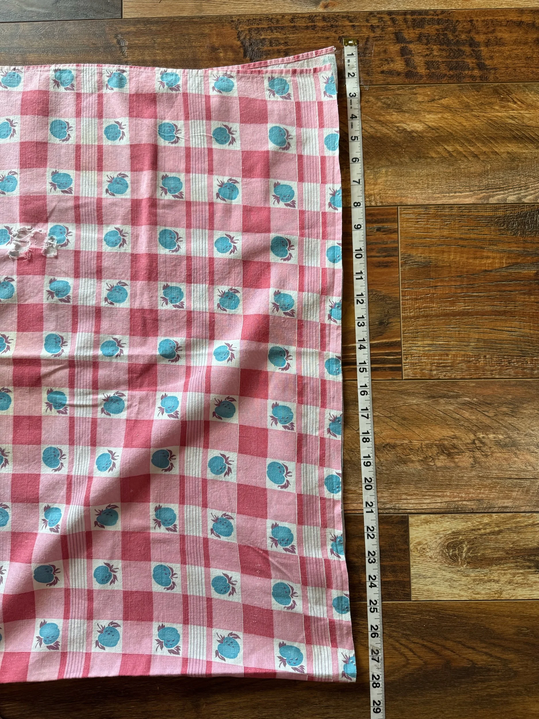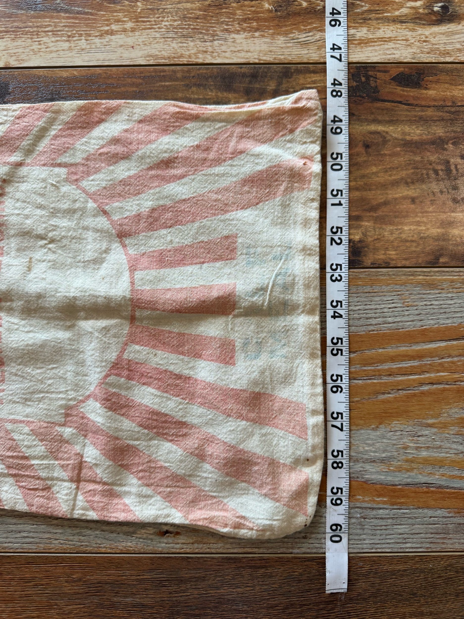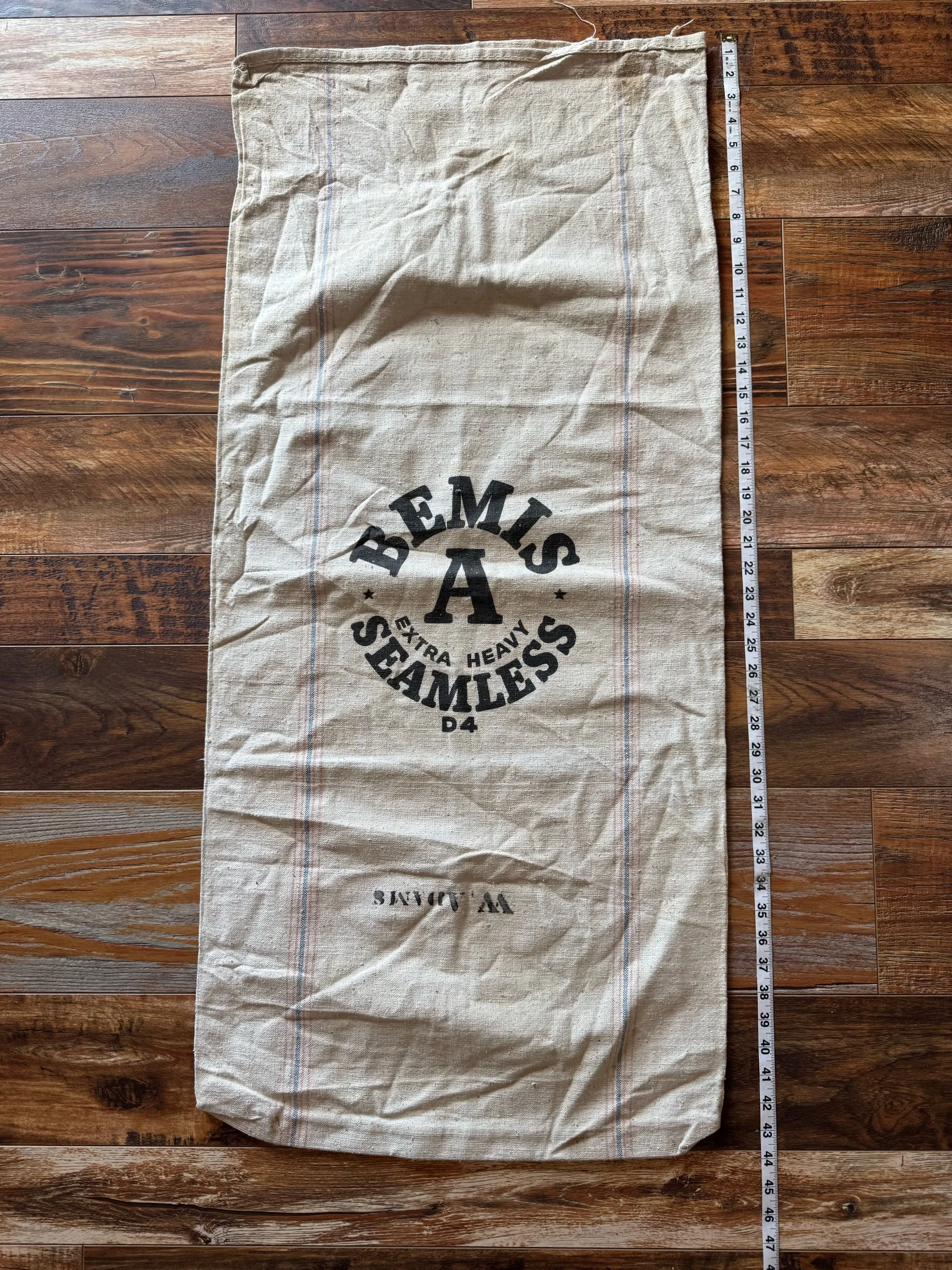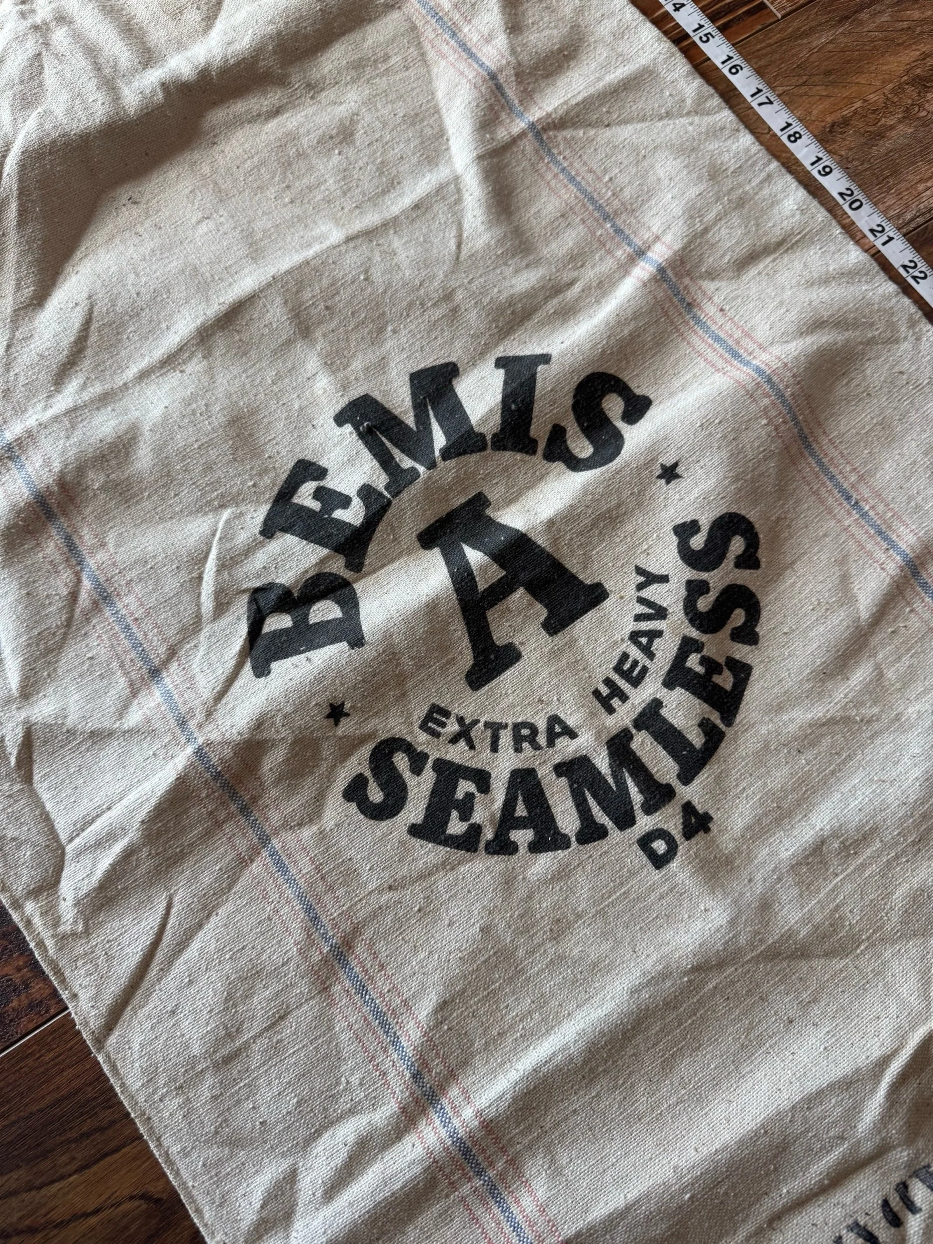 These cotton flour sacks measure 13” X 25” . This sack is still intact. We love the bold red print on the crem colored cotton. Overall, the sack is in good condition. Wear as expected for vintage sack. Please see all pictures before purchasing. Photos are a part of the description/listing.