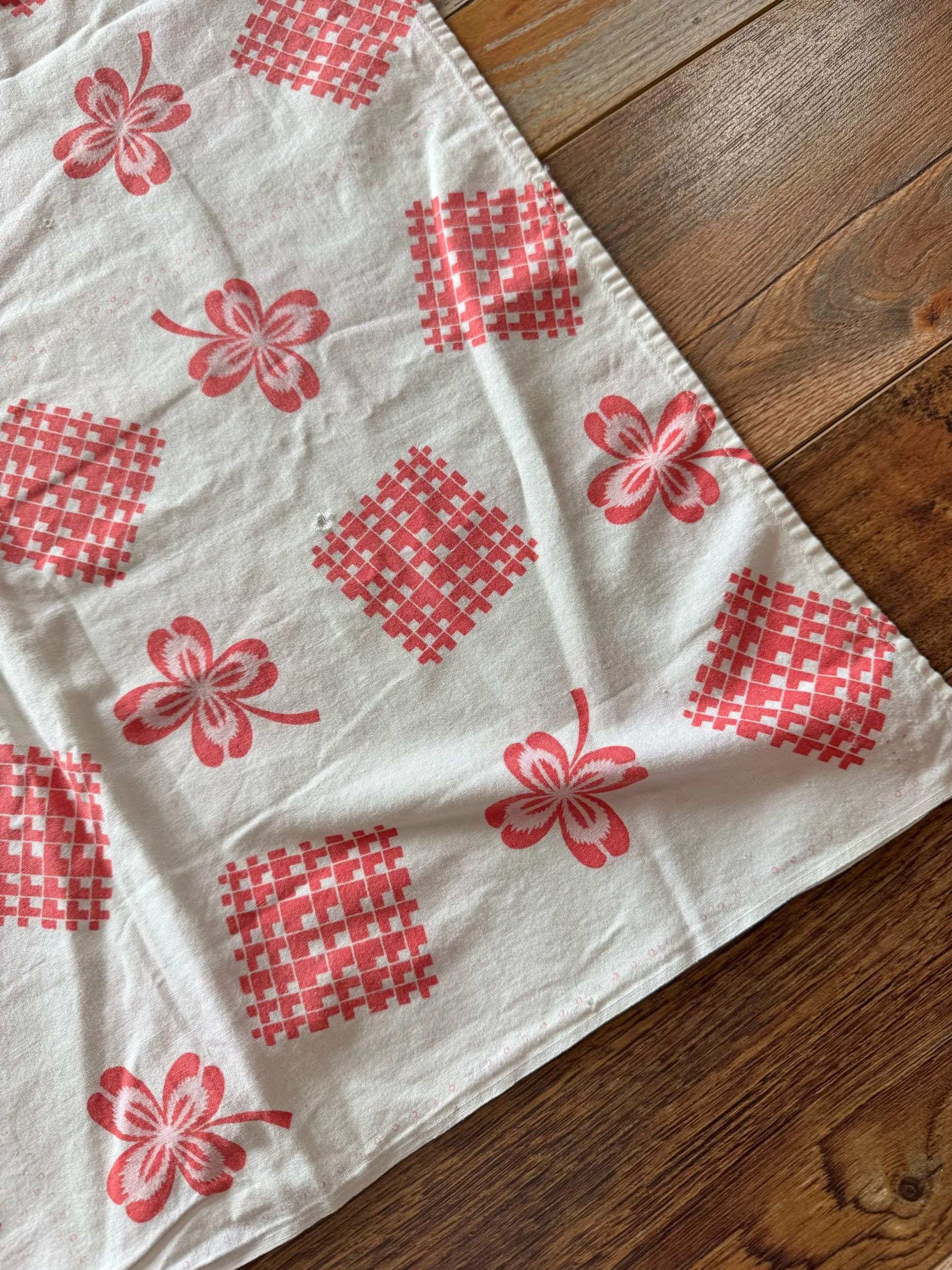 VTG Pink Four-Leaf Clovers Flour Sack